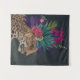 Hot House Leopard 1 de Fab Funky. Un leopardo reposa con flores tropicales y vegetación en la cabeza como una cabecera. | 192441GG