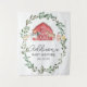 Invite a tus invitados con nuestra elegante y moderna invitación de baby shower en la granja con guirnaldas de vegetación y animales de granja bebé en acuarela. Personaliza los detalles de tu baby shower con un diseño simple y fuente elegante de estilo manuscrito.