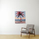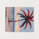 Una palmera audaz y artística de tonos rojos profundos se alza en una playa tranquila. Las olas del océano besan suavemente la orilla, mientras que las nubes suaves flotan en el cielo. Una combinación perfecta de serenidad tropical y estética moderna.
