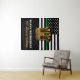 Agregue el toque final a la fiesta de retiro militar con estas pancartas y suministros para fiestas de diseño de línea verde fina militar. Bandera estadounidense con diseño de colores militares. Esta pancarta de fiesta de línea verde fina es perfecta para una fiesta de retiro militar, despedida de despliegues militares, celebración de bienvenida militar, graduación militar y fiesta de despedida de soldados. Perfecto para todos los militares, ejército, protección fronteriza, patrulla fronteriza, oficial de conservación, guardabosques, guardabosques, ley federal y aplicación de la ley. Personalice esta invitación de la bandera estadounidense con el nombre de su soldado y mensaje personal. Vea nuestra colección de regalos de retiro militar, regalos de graduación militar, favores de fiesta y suministros. DERECHOS DE AUTOR © 2021 Judy Burrows, Black Dog Art - Todos los derechos reservados. Tapiz personalizado de retiro militar