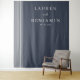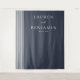 Este elegante fondo para bodas presenta un fondo azul marino profundo con sutiles líneas verticales blancas a la izquierda, creando un diseño sofisticado y minimalista. El texto está organizado en una jerarquía equilibrada utilizando fuentes serif limpias para los nombres y una fuente script más pequeña para "y", lo que garantiza la legibilidad y formalidad. Con amplio espacio negativo, este diseño transmite una sensación de calma y anticipación, perfecto para celebrar su día especial. Su diseño sencillo y paleta de colores contenida lo hacen ideal para parejas que buscan un look refinado y atemporal.