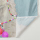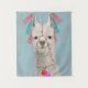 Llama II adorada por Victoria Borges. Llama de color blanco con pompones decorativos y adornos de estilo "tassel".