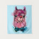 Características del este diseño que un retrato lindo de la acuarela de una llama en acuarela salpica de rosa y de azul.