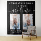 Celebre el éxito de su graduado y organice una fiesta sencilla con este fondo de tapiz de graduación de dos fotos de caligrafía de guión minimalista en fondo negro que puede colgar o adjuntar a su pared.