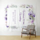 Un hermoso fondo para tu día de boda, este tapiz presenta anémonas púrpura, lavanda y blancas y vegetación a juego. Personaliza con tu propia información.