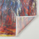 Este diseño presenta obras de arte del pintor impresionista francés Claude Monet (1840-1926). Representa un sauce lloroso. Monet utiliza pinceles amplios y extensos y colores vivos y estratificados para evocar la presencia emocional del árbol. La composición está dominada por trazos en cascada, verticales y giratorios de verde, amarillo, blanco, naranja y rojo, que sugieren las ramas que caen del sauce. Entre ellos se entretejen unos destellos de rojos morados, azules y profundos, que dan la impresión de luz filtrada y sombras cambiantes. La paleta es a la vez vibrante y sombría, reflejando el estilo tardío de Monet, en el que sus pinceles se volvieron más suaves y sus formas más abstractas, rayando en la libertad expresiva de la pintura moderna. El conjunto es inmerso y emocional, más que un paisaje sencillo, el cuadro transmite la atmósfera de estar bajo el árbol, envuelto por su baldaquino, con un sentimiento de tranquilidad y de asombro. El arte original fue pintado por Claude Monet en 1922.