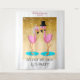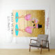 ¡Lo hacemos! ¡Lo hicimos!! ¡Vamos a la fiesta!!! Telón de fondo para fotos de boda. El diseño divertido perfecto para fotos de boda de destino y playa. Brillo dorado elegante mezclado con diversión de playa. Es tu boda, hazlo a tu manera. Diseños gráficos originales. Personaliza todo el texto. Flamencos rosados lindos con corbata de moño y esmoquin y velo de novia con liga.