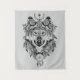 Características del este diseño un retrato de un lobo que lleva plumas tribales y un dreamcatcher.