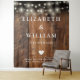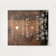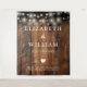 Este fondo de luces de cadena de madera rústica boho para boda de granero puede ser personalizado con su información en tipografía chic. Diseñado por Thisisnotme©