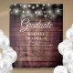 Un elegante telón de fondo para fotos de fiesta de graduación rústica con luces de cuerda sobre un fondo de paneles de madera. Diseñado por Thisisnotme©