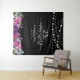 Celebra tu aniversario de bodas con esta tapicería personalizada. Tus invitados disfrutarán tomando una foto con este telón de fondo sofisticado y recordarán tu día especial. El diseño cuenta con tipografía chic "Aniversario 25", luces de cuerda y fondo floral. La invitación y suministros para fiestas coincidentes están disponibles en mi tienda BaraBomDesign. ¡Gracias!