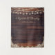 Complemente su rústico boda, ducha de pareja o fiesta de compromiso con un fondo temático o un programa de fotografía con madera de grano marrón oscuro, encaje en un marfil, crema, beige o blanco roto, luces de cuerda brillantes, lámparas de tarro de albañilera y linternas. Personalizado con los nombres de la novia y el novio y fecha en un elegante tipo de letra. CAMBIOS: Cambie el estilo, color, tamaño y ubicación del tipo de letra del texto haciendo clic en PERSONALIZAR MÁS AÚN debajo de la sección PERSONALIZAR. Póngase en contacto con el diseñador a través de Zazzle Chat o makeitaboutyoustore@gmail.com si desea modificar este diseño o en otro producto.