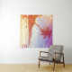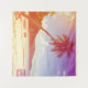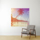Tapiz Lugar de playa, cocoteros y cama de madera.