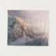 Maravillosa luz del sol brillando en majestuosas montañas con la niebla rodando sobre la nevada colina.