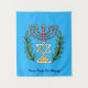 Esta imagen fue adaptada de una antigua teja judía persa y cuenta con una menorah con un Magen David (Estrella de David) enmarcado por ramas de olivo. Se han conservado las imperfecciones de la imagen original pintada a mano. Añade tu propio texto al personalizar.