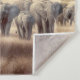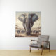 Un elefante dominante está a la vanguardia en medio de un rebaño en un entorno sereno de sabana.