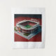 Wall Art & Décor: Un diseño estilizado de Old Trafford con arte de línea limpia, acentos rojos y etiquetas para áreas emblemáticas como el Stretford End.