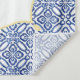 Tela de fondo con limones de acuarela / hojas / hermosas flores contra un borde de azulejos vintage azules y blancos. Tengo invitaciones y otros artículos de papelería en el mismo diseño (por favor, vea la colección).