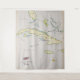 Mapa ilustrado de Cuba (más las islas circundantes) en un hermoso estilo vintage detallado, decorado con un gran plano rojo.