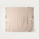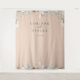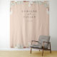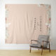 Hermoso marco rústico boho-chic de palmas secas, rosas y orquídeas blancas sobre fondo de arena rosa, tapiz personalizado para telón de fondo de fotos de boda. Diseñado para coincidir con nuestra colección de boda Oasis Bohemio.