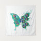Mariposa pintada de forma artística, ficticia, verde, detallada, con plumas verdes, hermosas, de pavo real sobre fondo blanco.