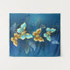 Composición de vuelo, joyería, oro y mariposas oscuras sobre fondo de joyería texturada. Mariposa dorada.