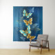 Composición de vuelo, joyería, oro y mariposas oscuras sobre fondo de joyería texturada. Mariposa dorada.