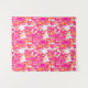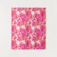 Tapiz en una bandada de mariposas en tonos rosa profundo, fucsia, orquídea y naranja de coral sobre un fondo blanco cremoso