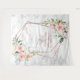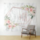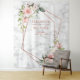Moderno y trendy, este hermoso diseño de tapiz de boda presenta un falso dorado de rosa de cobre geométrico adornado con rosas y flores de acuarela rosa cobrizo, sobre una textura de falso mármol blanco. Los nombres de la pareja y algunos detalles de la boda están en un color cobre a juego. Copyright Elegant Invites. Todos los derechos reservados.