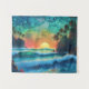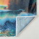 Dejemos que la belleza surrealista de esta pintura marina te lleve a un mundo de tranquilidad, donde una puesta de sol fascinante colisiona con los tonos iridiscente, opal y jade.