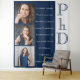 ¿Buscas ideas de regalos de doctorado? Esta tapicería de fotos de graduación de doctorado es una excelente opción tanto como regalo como decoración para la fiesta. Este recuerdo memorable permite al graduado agregar este importante logro a su pared con un mensaje personalizado de usted. Con tres plantillas de fotos, puede elegir varias fotos del graduado, fotos de seres queridos celebrando su graduación o una combinación de ambos. Esta tapicería azul y blanca llamará la atención y hará que su graduado sepa lo orgulloso que está de ellos. Todo el texto es personalizable. ¿Listo para crear este regalo? Simplemente agregue sus palabras y fotos, agregue esta tapicería a su carrito, luego celebre el importante logro de su graduado.