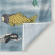 Este ilustracion presenta una variedad de merfolk de todo el mundo. Los seres descritos incluyen: una sirena del norte de Europa de cabello rubio, una mezcla masculina de culto irlandés con un gorro rojo, un manto danés de piel azul, un bonito vestido de collar de las tradiciones del pueblo saa'a de las Islas Salomón, un ningyo japonés de rostro humano y un kaaiman de ojos rojos de Sudáfrica.