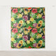 Patrón de medios de mezcla pintados a mano con diversas frutas tropicales, flores y hojas
