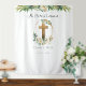 Fondo para cabina de fotos de Primera Comunión elegante en español. Mismo diseño también disponible en inglés. Diseño neutral en cuanto al género, ideal tanto para niñas como para niños. Hermoso despliegue que unifica tu tema, excelente como pieza decorativa como fondo para fotos o detrás de la mesa de postres. Hermosa cruz dorada con arco dorado con vegetación y flores blancas y amarillas doradas. Borde decorativo elegante en la parte superior con hojas verdes y algunas flores en una mezcla de tonos verdes, blancos, dorados, amarillos y grises. "Mi Primera Comunión" en caligrafía moderna a mano. Invitaciones de Primera Comunión coordinadas tanto en español como en inglés, así como una gran variedad de productos para eventos disponibles. Parte de nuestra "Colección de Papelería Floral y de Vegetación Eterna".