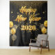 Featuring a luxurious black background, glowing gold text, and festive balloons and glitter sparkles, this design creates the perfect modern backdrop for New Year’s Eve parties, photo booths, events, and home décor.