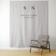 Este elegante y moderno fondo boda presenta un sencillo diseño de texto negro, con sus iniciales o monograma, sobre un fondo gris claro.