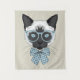 Características del este diseño que un gato siamés se vistió en un par azul de vidrios y de pajarita a cuadros.