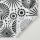 This is a high-contrast, modern, monochrome pattern featuring an intricate overlay of geometric and botanical forms. The design achieves a harmonious balance between the precision of simple shapes and the fluidity of natural inspiration.