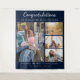 Photo collage script graduation party photo booth backdrop for the new grad. Features 4 photos of the graduate, and the word "Congratulations" is set. Add their name, school college, and class year of graduation by clicking the "Personalize" button.