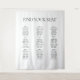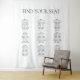 Haga una primera impresión sorprendente con nuestro elegante y moderno Tapiz de tela Boda en blanco y negro "Find Your Seat" (Encuentra tu asiento), un sofisticado y completamente personalizable que añade estilo y claridad a tu día de bodas. Diseñado para las parejas que aman una estética limpia y contemporánea, este cuadro de asientos en blanco y negro está impreso en tejidos resistentes a arrugas de alta calidad, ofreciendo una alternativa refinada al papel o la señalización acrílica. Este tapiz de tela incluye columnas de texto de personalizable en las que puede enumerar los nombres de los invitados y los números de la tabla en un diseño elegante y organizado. La minimalista tipografía negra con un crujiente fondo blanco crea un aspecto atemporal que complementa cualquier tema boda, desde la ciudad de la moda hasta las elegantes ceremonias al aire libre. Ligero y fácil de colgar en un caballete, marco de exposición o pared, es perfecto para cualquier configuración del lugar y también hace un lindo keepsake mucho después de que la celebración termine. Ideal para los bodas modernos, el cartel de la tabla de personalizables es una pieza funcional que ayuda a los clientes a encontrar sus asientos mientras realza su decoración boda. Ya sea que esté planeando un evento con corbata negra o una reunión contemporánea en el jardín, este gráfico de asientos de tela aporta elegancia y practicidad a su día especial.