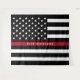 Esta tapicería que se puede utilizar como telón de fondo para fotografías en ocasiones especiales, como la jubilación de un bombero o fiestas de cumpleaños, presenta una bandera americana de línea roja fina en blanco y negro de bombero junto con el nombre de un oficial para que puedas personalizar. Diseñado por el artista de renombre mundial ©Tim Coffey.