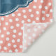 Patrón de puntos rosa y blanco claro y moderno en el fondo, coronado por una etiqueta azul oscuro con un nombre de personalizable y una plantilla de monograma.