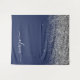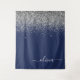 Tapiz de monograma de nombre e inicial de letra de lentejuelas brillantes de color azul marino y plateado. Esto hace el regalo perfecto de cumpleaños número 16, boda, fiesta de soltera, aniversario, baby shower o fiesta de despedida de soltera para alguien que ama el lujo glamuroso y los estilos chic.