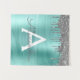 Tapiz monograma de nombre e inicial de metal cepillado con brillo metálico plateado y azul teal falso y destellos. Esto hace que el regalo perfecto para cumpleaños 16, boda, despedida de soltera, aniversario, baby shower o fiesta de soltera para alguien que ama el lujo glamoroso y los estilos chic.