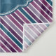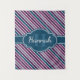 Diseño, diseño, color púrpura oscuro, blanco, verde azulado patrón de rayas inclinadas azul en el fondo, con una etiqueta azul verde azulada con un nombre de personalizable y una plantilla de monograma.