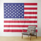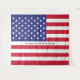 Cúbrelo en tu pared, úsalo como manta o fondo para fotos, esta alfombra presenta un diseño patriótico de la bandera americana en rayas rojas y blancas y estrellas blancas sobre azul. Personaliza con un nombre en el centro. Perfecto para fiestas de retiro militar y cumpleaños con tema patriótico. Diseñado por el artista de renombre mundial ©Tim Coffey.
