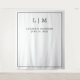 Fondo simple para cabina de fotos de boda con un diseño moderno y elegante con tu monograma de dos letras junto con tus nombres y fecha rodeados de un borde delgado. Todo el texto es negro sobre fondo blanco y los colores del texto y del fondo pueden cambiarse a cualquier color que desees. Un diseño chic y elegante que es ideal para una pareja minimalista. Este fondo personalizado es ideal para tomar fotos con invitados en la recepción de tu boda.