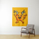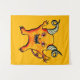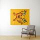 Tapiz de niños demonios con un divertido dibujo de tinta personalizado de una criatura demonio amarilla rara con cuernos sonriendo alegremente y mostrando sus dientes afilados sobre fondo amarillo cálido, genial para los niños.