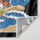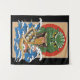 Gracioso ilustracion personalizado de un hambriento monstruo marino japonés atacando un bote de sushi. ¡Los personajes de sushi están chapoteando para salvar su vida de la criatura gigante! Tapiz para los amantes del sushi.