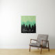 Silueta rústica de árboles forestales y tapicería de las montañas con la palabra "aventura" en escritura blanca.